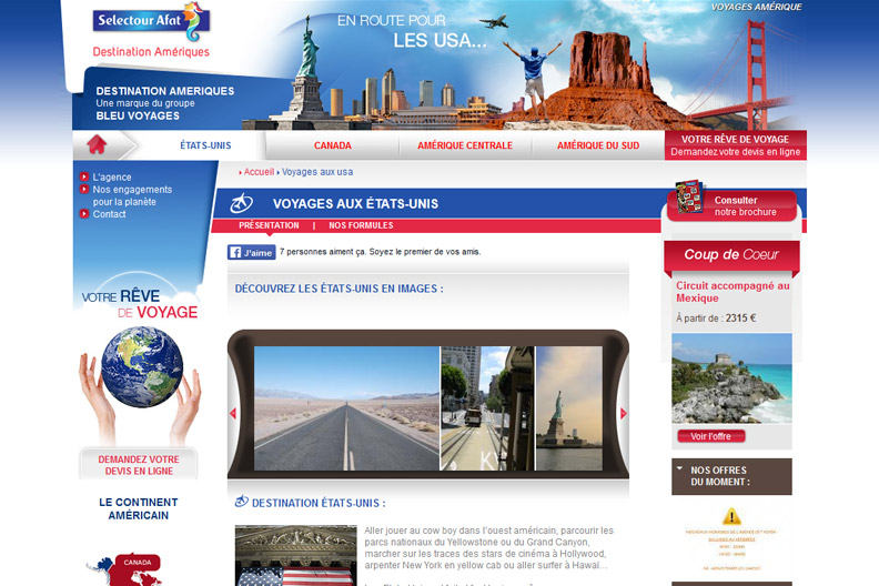 Création du site de présentation d’un voyagiste spécialisé sur les séjours aux Amériques.