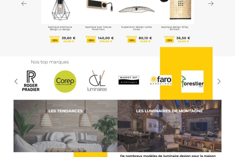 Site ecommerce de luminaires design pour l'intérieur et l'extérieur
